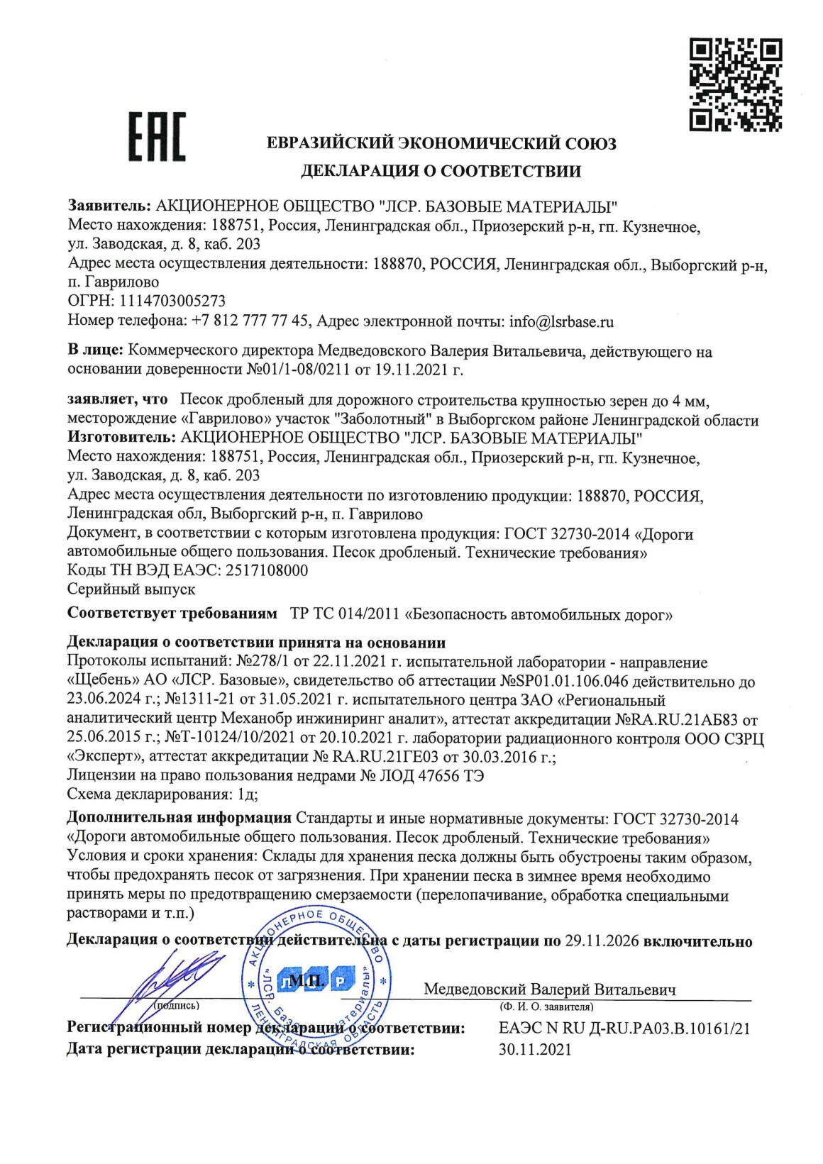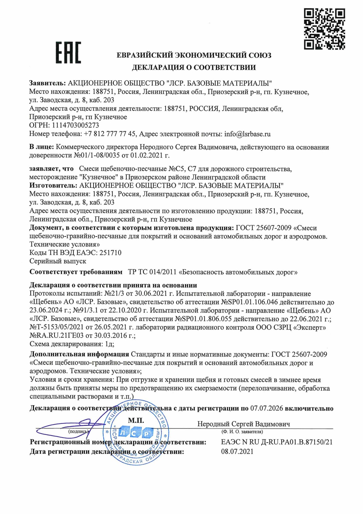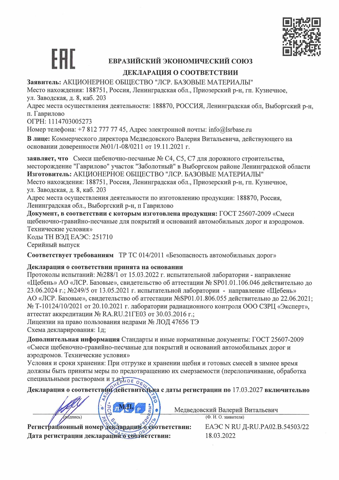 - компонент для обогащения песчано‑гравийных смесей (ЩПС);
