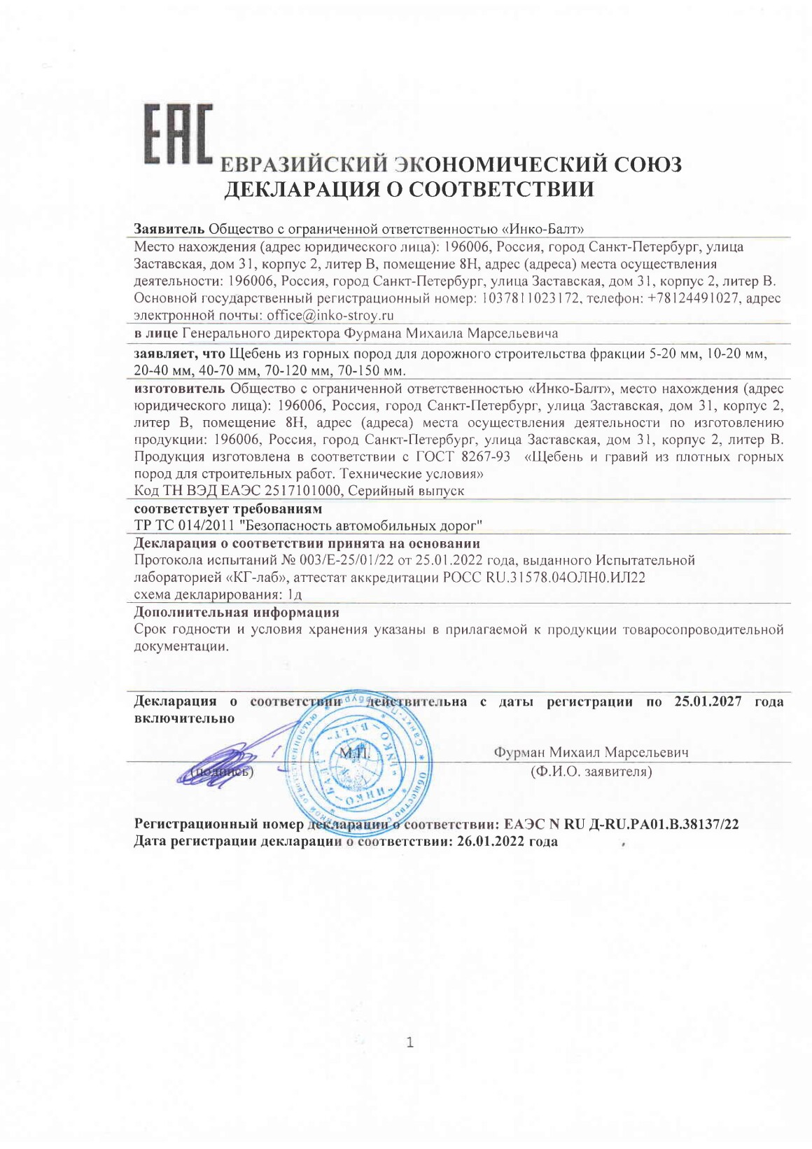 ✅ Статус: Высокопрочный, морозостойкий, экологичный, крупнофракционный
